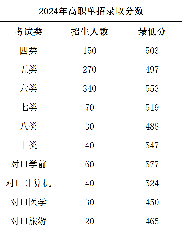 2024年高职单招录取分数