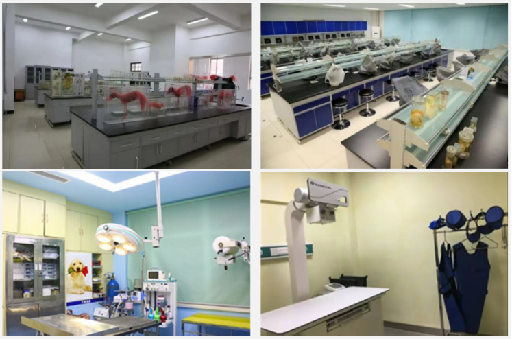 按照“产教融合、工学结合、学做一体”的职业教育理念,校内已建成标准化宠物医疗专业实训室,包括宠物解剖实训室、宠物标本陈列室、宠物生理生化实训室、宠物病理实训室、微生物与免疫实训室、宠物诊疗实训室、宠物疫病检测实训室以及宠物外科手术室和影像室等。