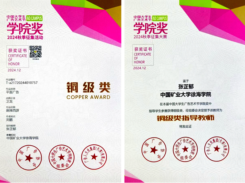中国大学生广告艺术节学院奖始创于1999年,是中国广告教育界极具影响力的赛事之一,是唯一由国务院批准设立的大学生广告专业奖项。此次获奖展现了学院学子在艺术设计领域的实力与才华,学院将持续做好学科专业竞赛组织工作,通过实践锻炼提升学生的专业技能和综合素质,为社会培养更多优秀的艺术设计专业人才。
