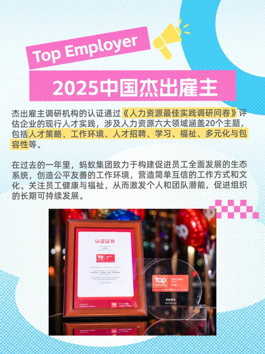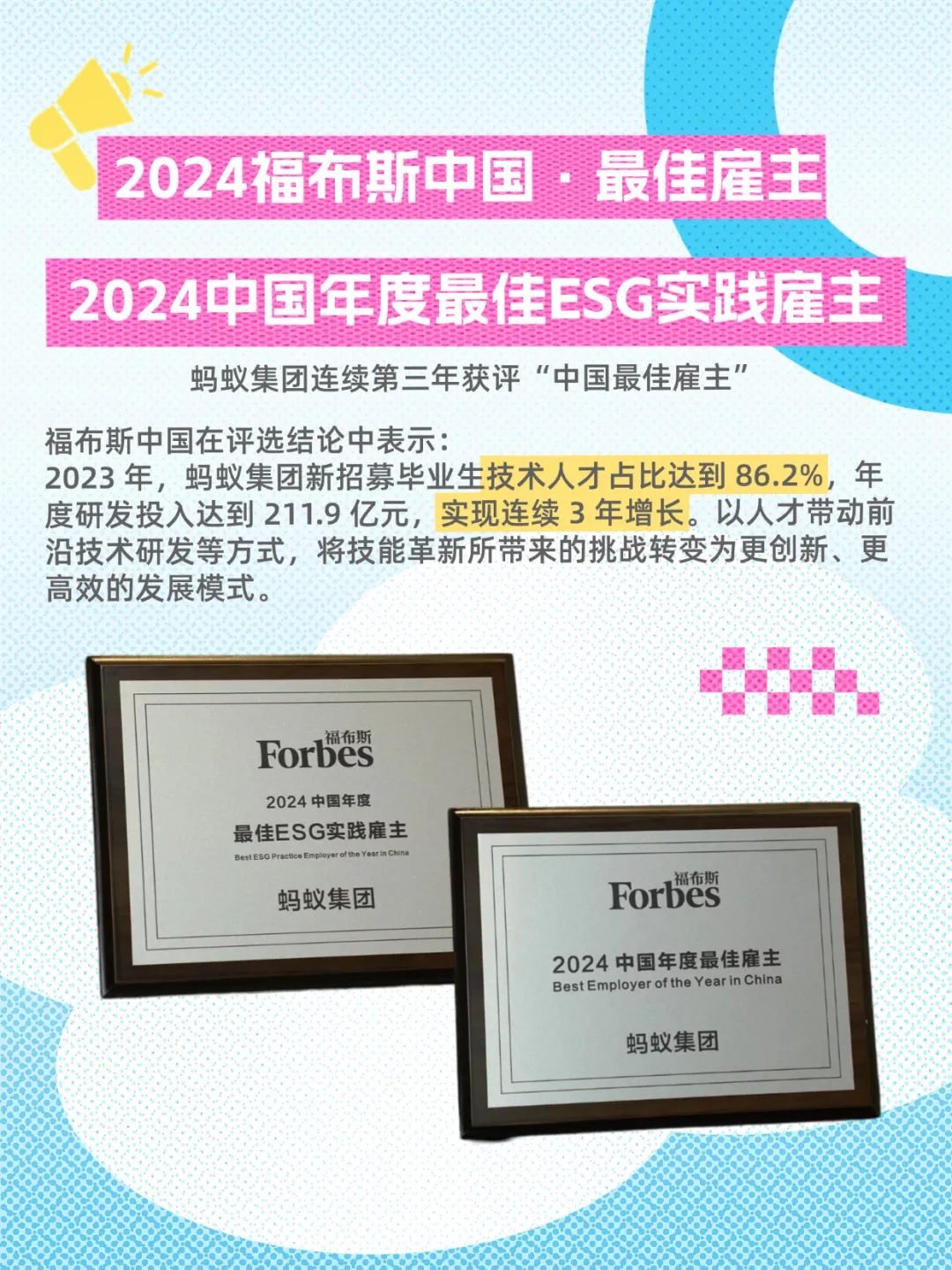 能获得这些荣誉是因为我们始终将人才视为最宝贵的财富希望让大家加入蚂蚁时怀揣着的理想能在工作与生活中得以有回响~