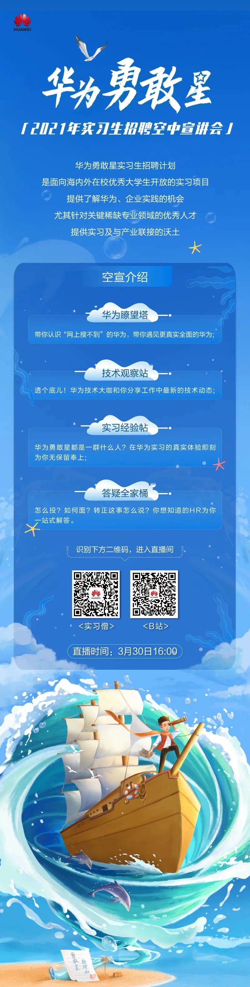 3月30日| 华为勇敢星实习生招聘空中宣讲会