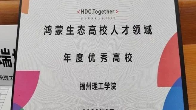 8月4日,2023年华为开发者大会(HDC.Together)正式开幕,福州理工学院被评为“华为鸿蒙生态高校人才领域年度优秀高校”,全国仅9所高校获此殊荣!