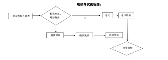 3.笔试考生必须在开考前30分钟由监考人员验证准考证和身份证,并经金属探测仪检测合格后方能进入考场。考试开始后15分钟仍未到达考室的视为自动放弃考试资格。在开考信号发出前或考试终了信号发出后答题按考试违规论处。考试为满场考试,不得提前交卷。