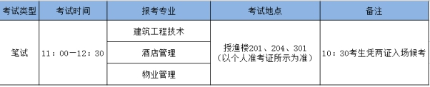 报到日期 | 考试时间 | 报到地点 | 备注 |