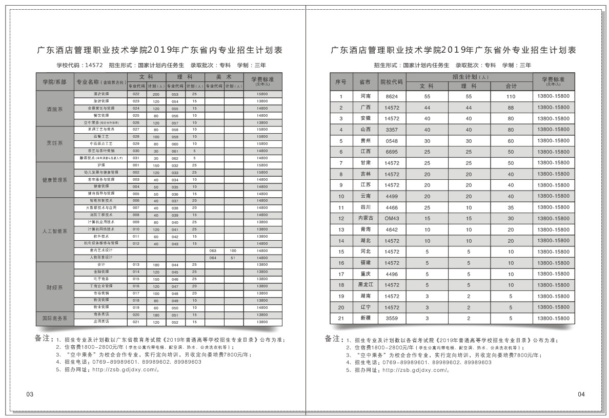 广东酒店管理职业技术学院2019年普通高考招生简章