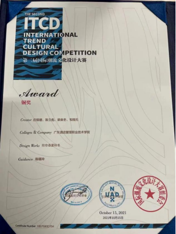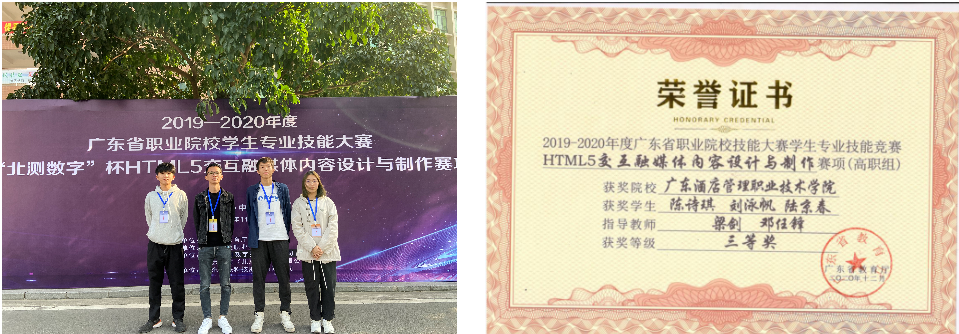 为提高学生学习积极性和竞争意识,在教学过程中以赛促学,学院每年都组织学生参加各类专业技能类竞赛,包括广东省职业技能竞赛、全国数字媒体艺术大赛、大学生广告艺术大赛、蓝桥杯全国软件和信息技术专业人才大赛等,并取得不错的成绩。