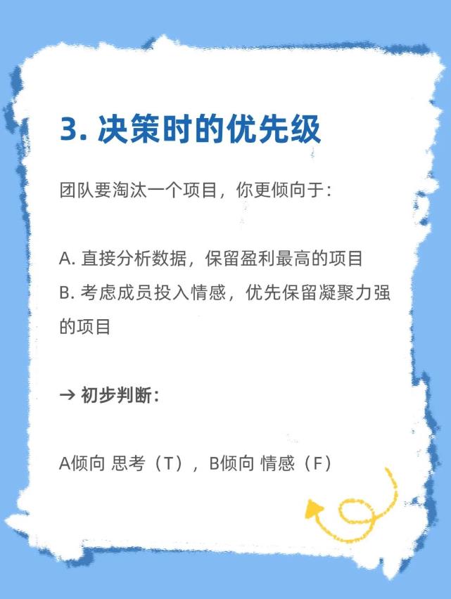 根据四题答案的倾向(如 A-A-B-A → ENTJ),可初步推测对应的MBTI类型。需注意:此为简化版测试,完整评估需更全面的题目哦!当然,若想要更深入了解,也可以使用You测评小程序,进行免费测试哦~