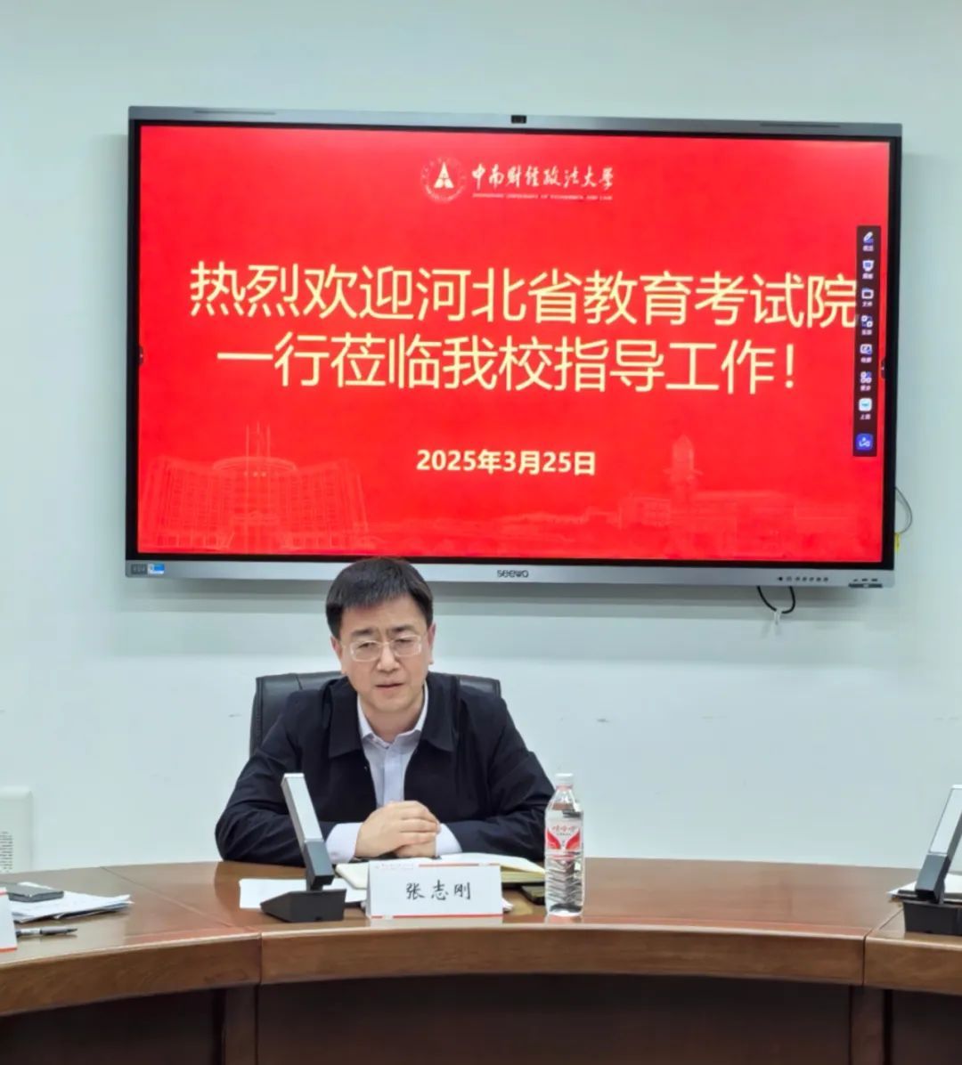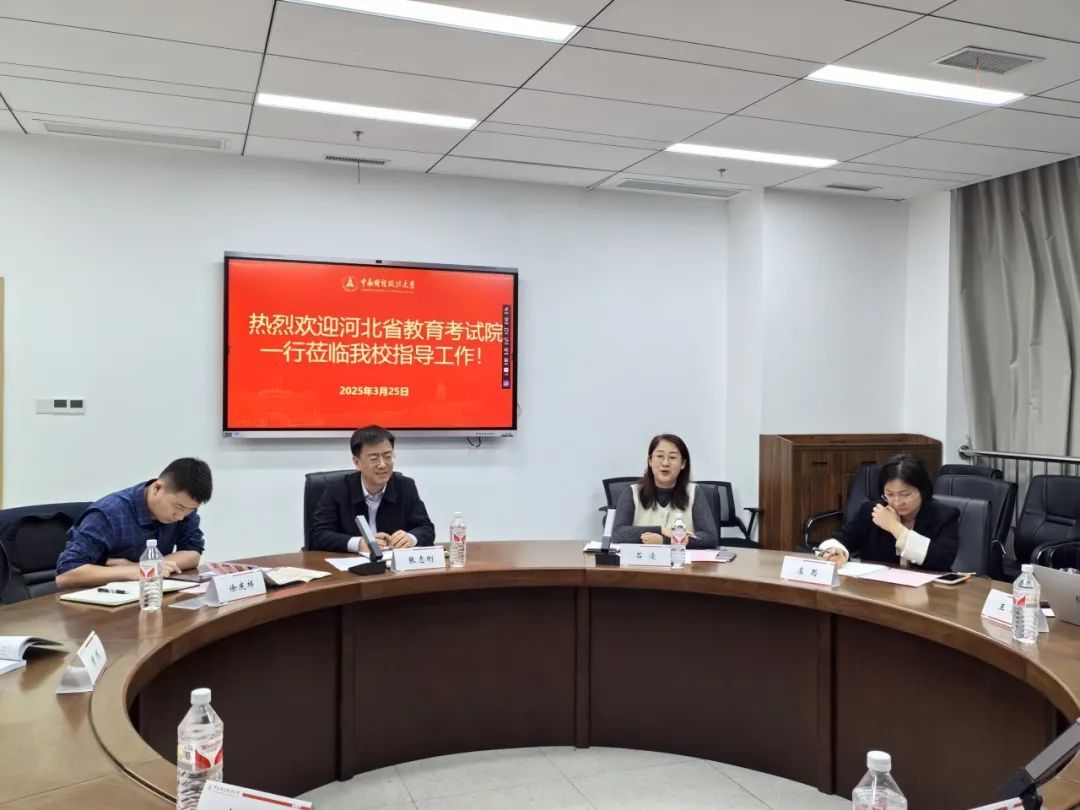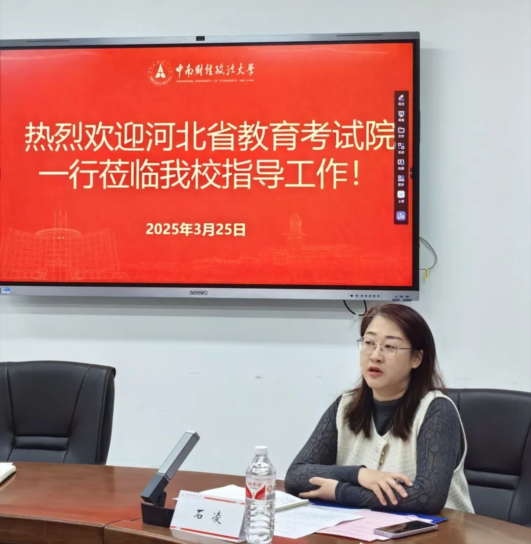 石凌介绍了我校往年在河北省的计划分布、专业投放、录取分数及河北籍学子在校的优异表现与高质量就业情况。并感谢河北省教育考试院长期以来对我校招生工作的大力支持与关心,未来中南财经政法大学将充分利用考试院搭建的线上线下招生宣传平台,进一步吸引优质生源报考我校。