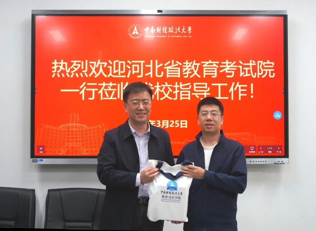 刘山介绍了河北省近几年的高考报名情况,以及考生的志愿录取情况,并表示愿加强双方的交流合作,为我校招生宣传工作提供支持,让更多的河北考生了解中南财经政法大学。