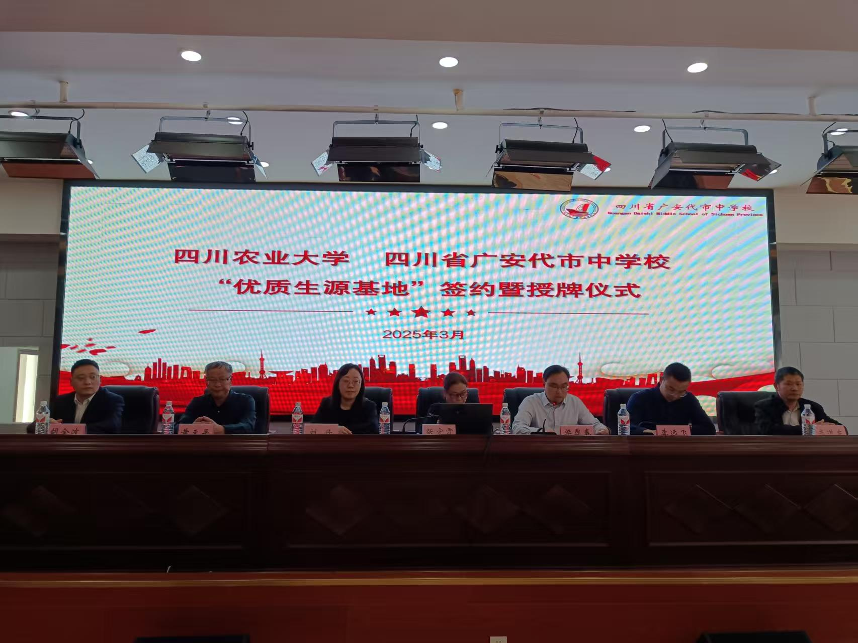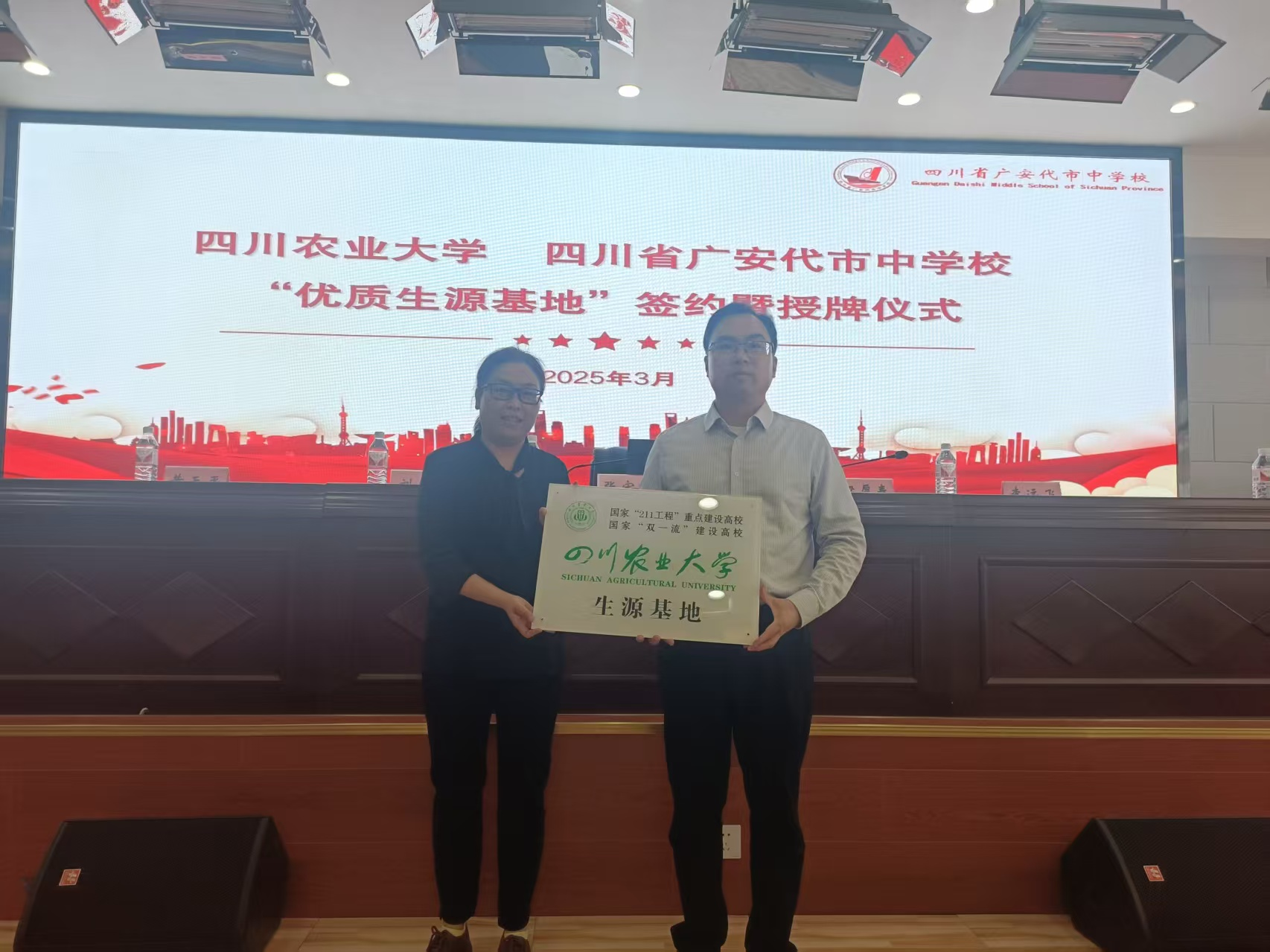梁厚春在致辞中,对代市中学的办学特色和育人质量等情况作了简要介绍,就资源学院一行表示热烈欢迎,并对四川农业大学赴校授牌表示感谢。希望双方能够在人才培养、学习讲座、课程体验、社会实践等方面加强合作。张宏霞代表学校与代市中学签署了优质生源基地协议书,并进行授牌。