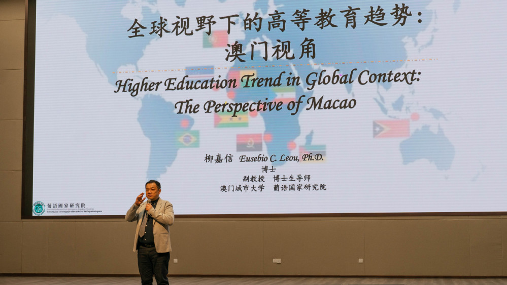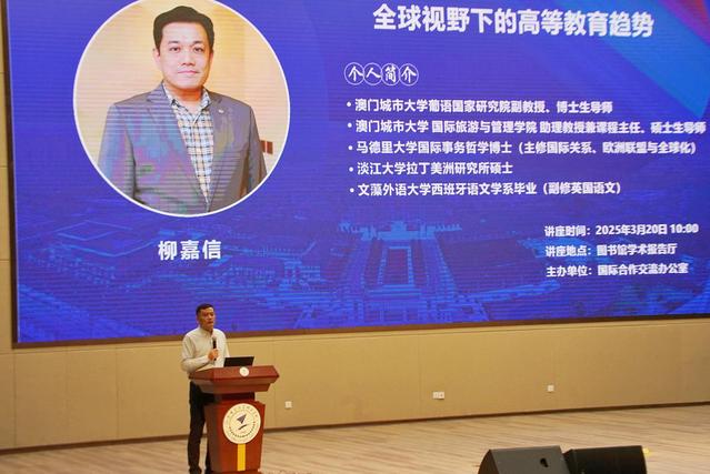 柳嘉信博士用双语作了题为“全球视野下的高等教育趋势:澳门视角”的主旨讲座。讲座围绕民心相通的高教全球趋势、立足粤港澳大湾区、挑战自我与成长以及澳门特色课程案例等内容,通过详实的数据和生动的案例,展示了澳门高校在推动跨文化交流、促进区域教育合作方面取得的显著成效。他鼓励同学们利用外语+专业优势,打开学科边界,增强自身的综合素质和竞争力,为国家的发展作出青年人应有的贡献。