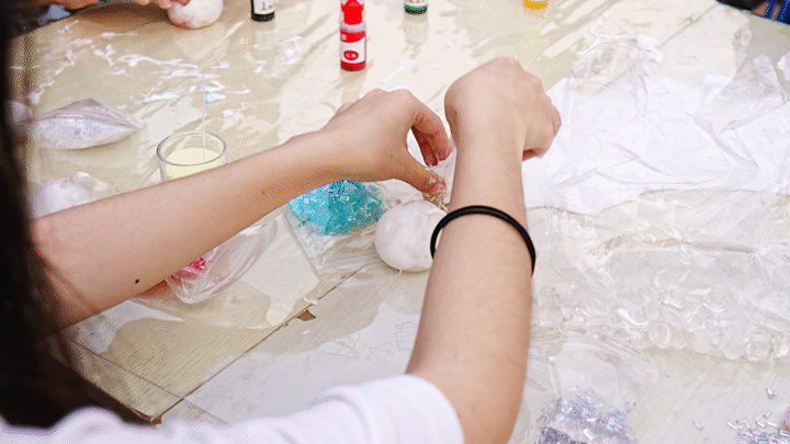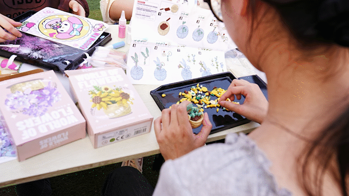 创意手工区专心致志,DIY作品散发艺术魅力。柏瑞雪 程金玲 屈鸿睿 摄