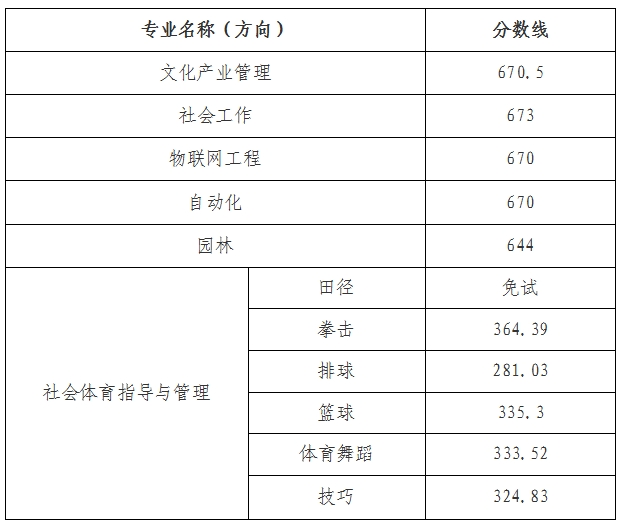 社会体育指导与管理专业,综合分计算公式为:综合成绩=文化素质测试成绩×0.3+专业技能测试成绩×0.7。录取最后一名同分排序规则:技能总分、专项素质、专项技能、文化素质测试。
