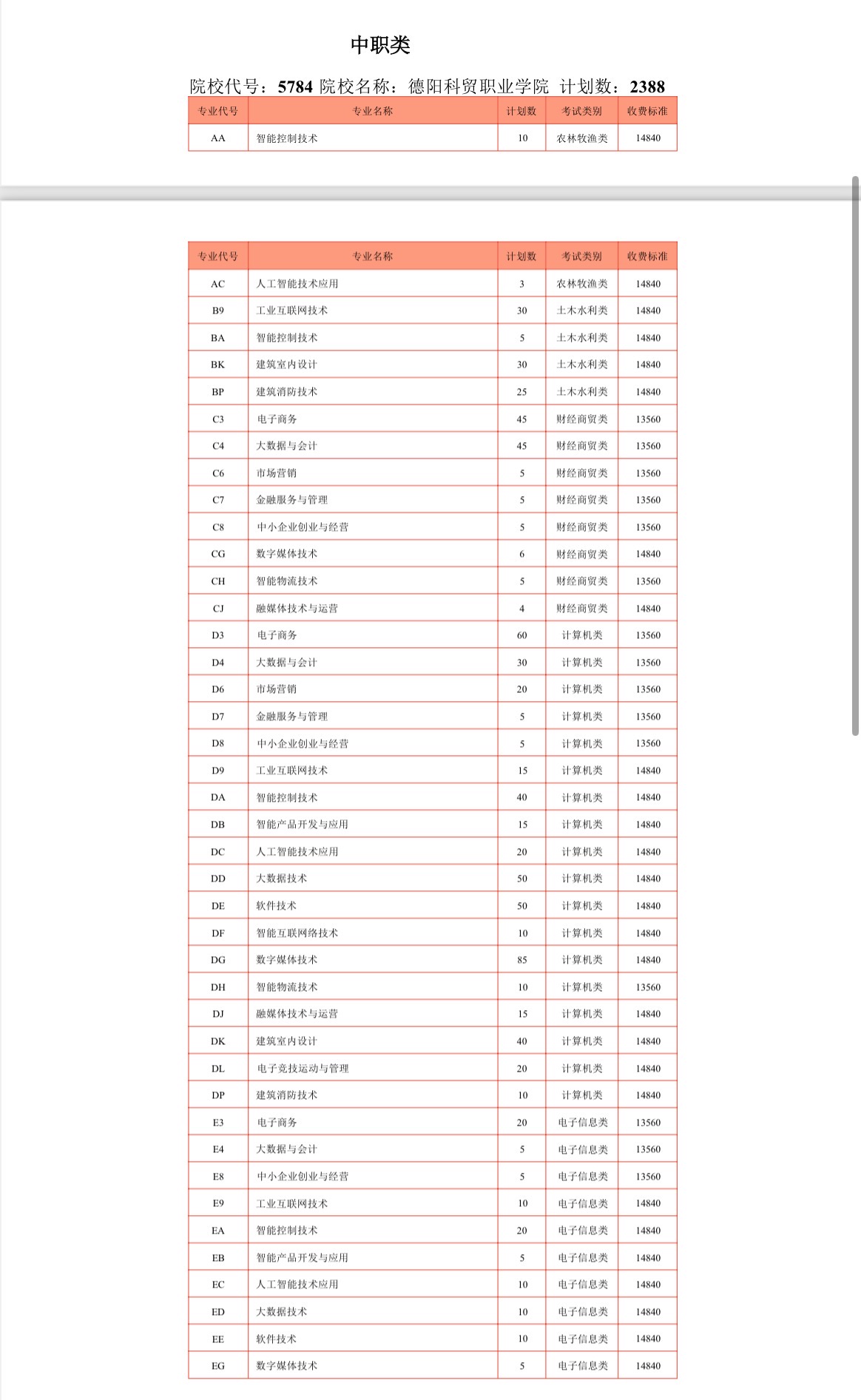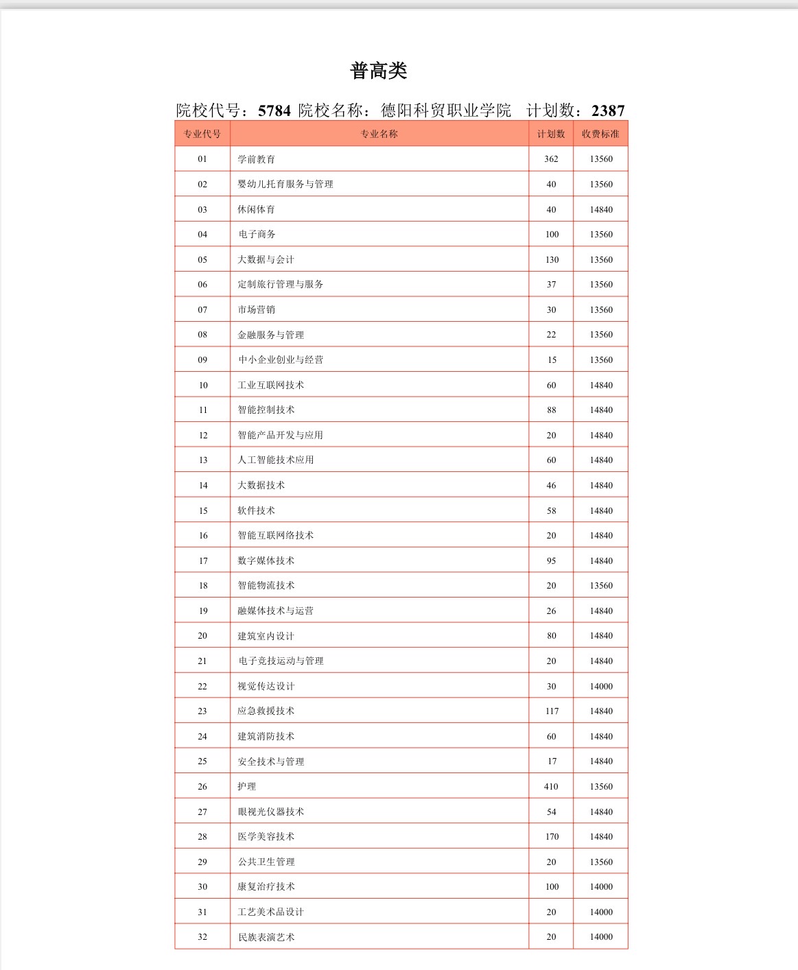 德阳科贸职业学院2025年高职单招招生计划