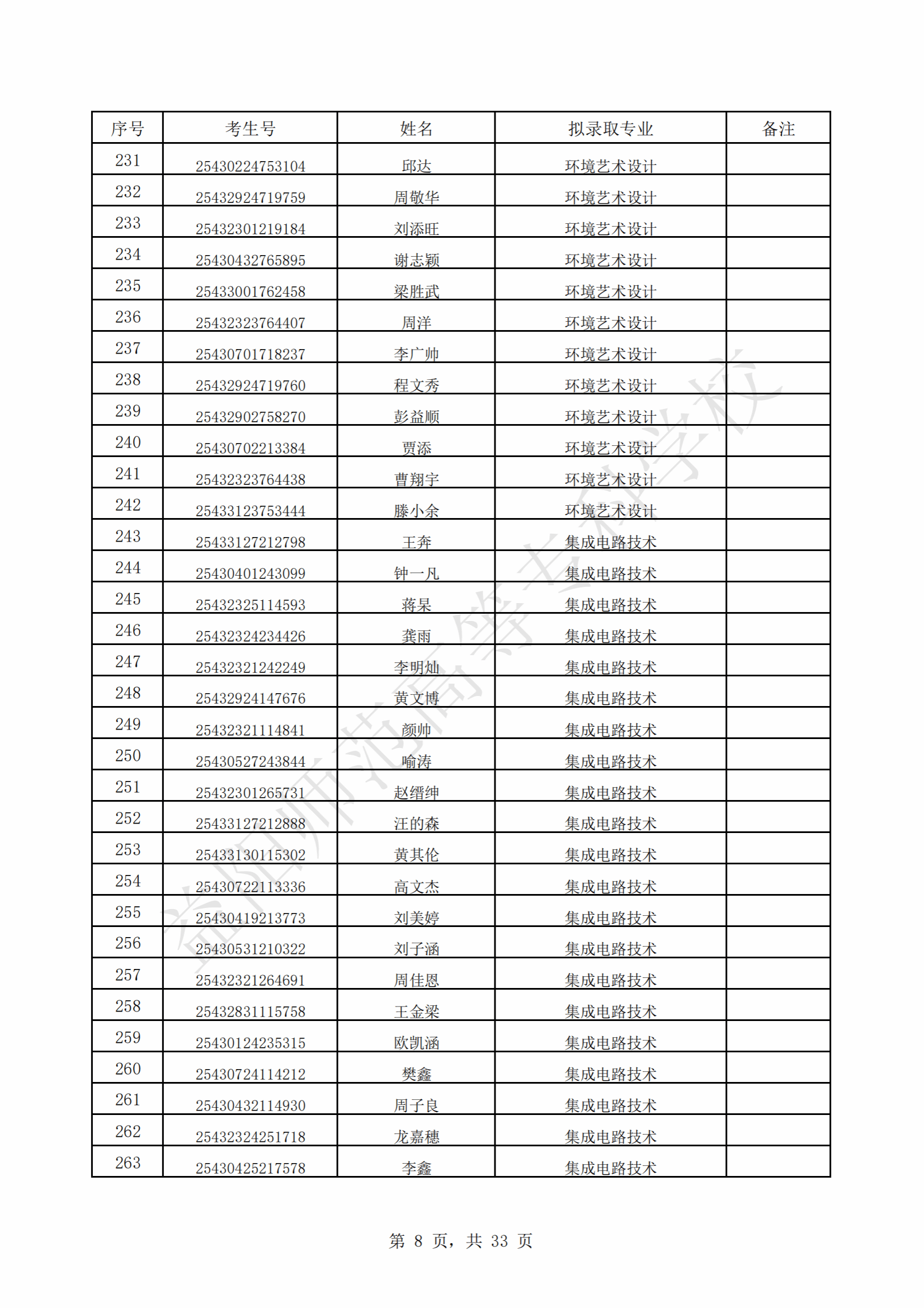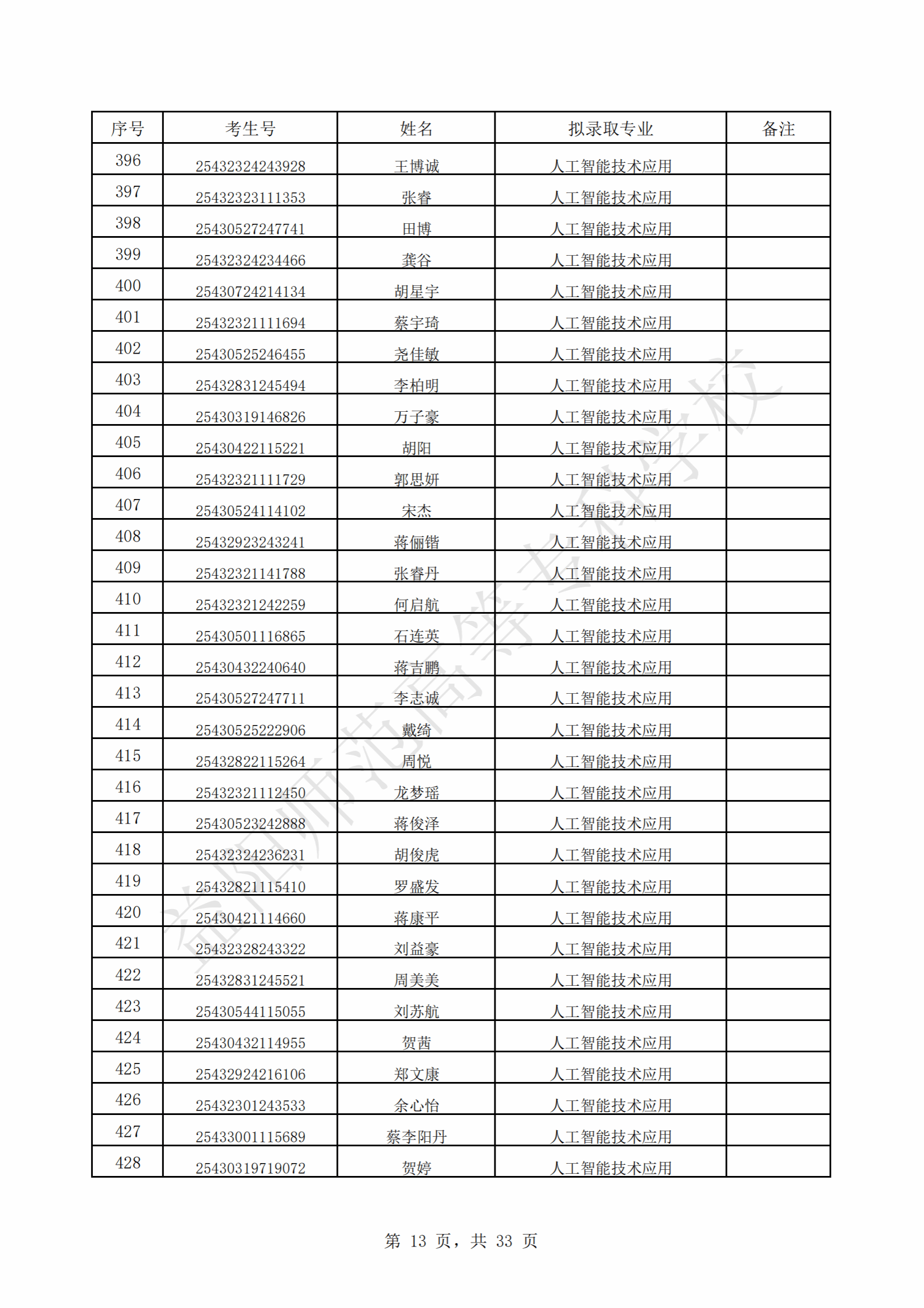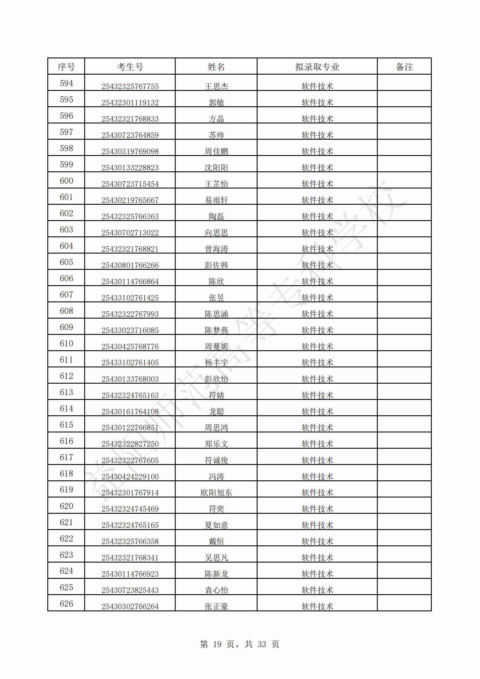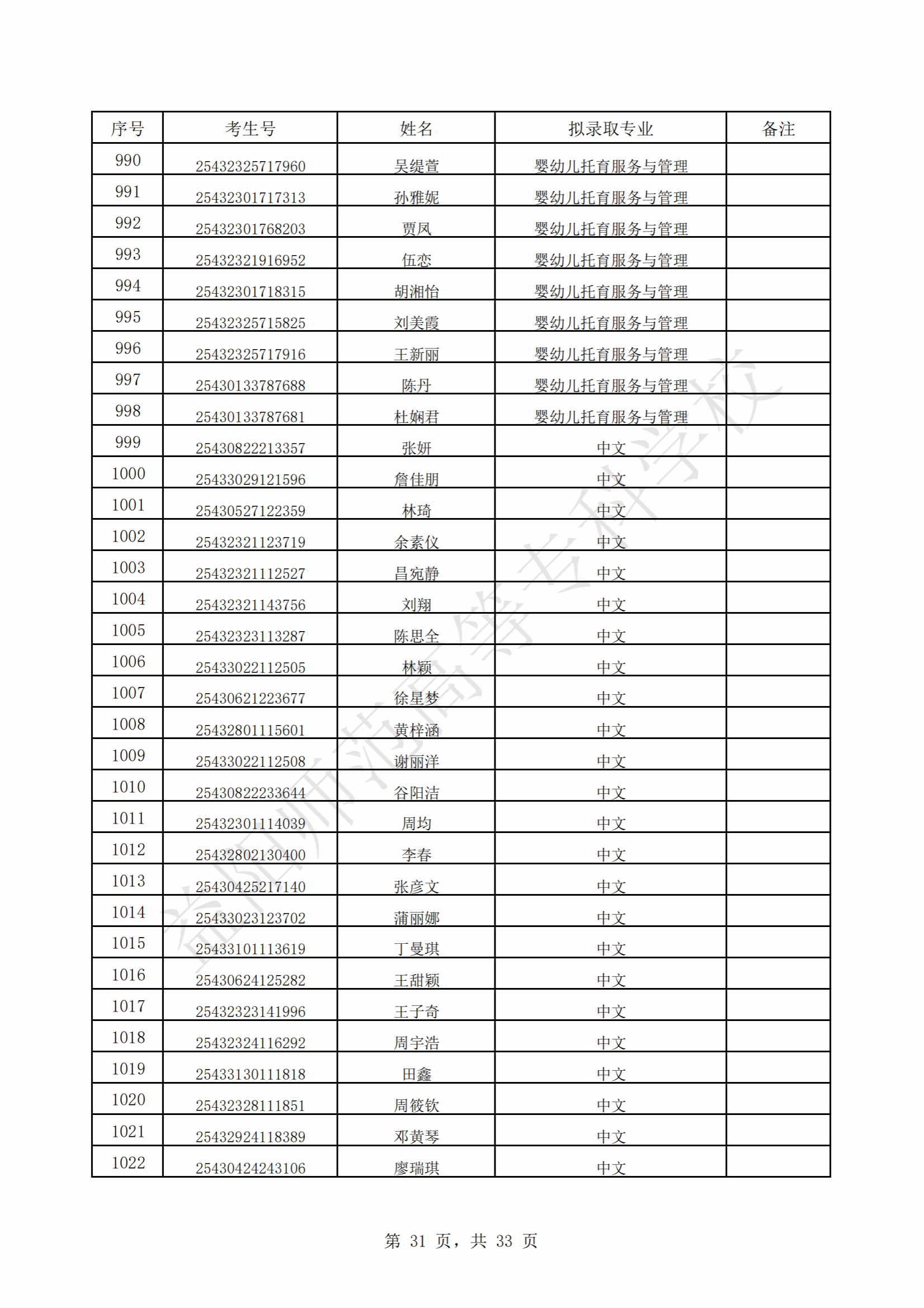 益阳师范高等专科学校2025年单独招生考试第一志愿考生拟录取名单公示