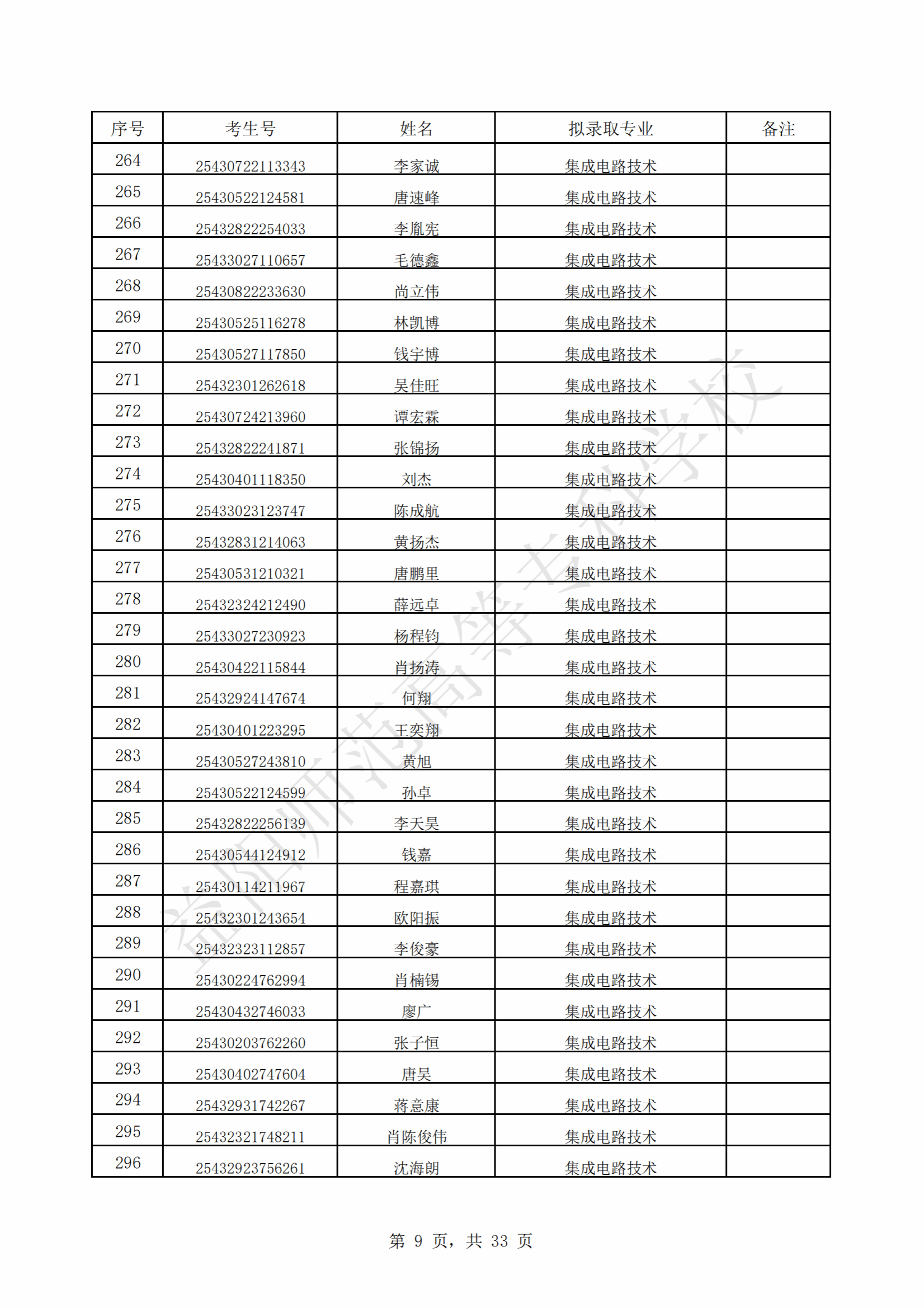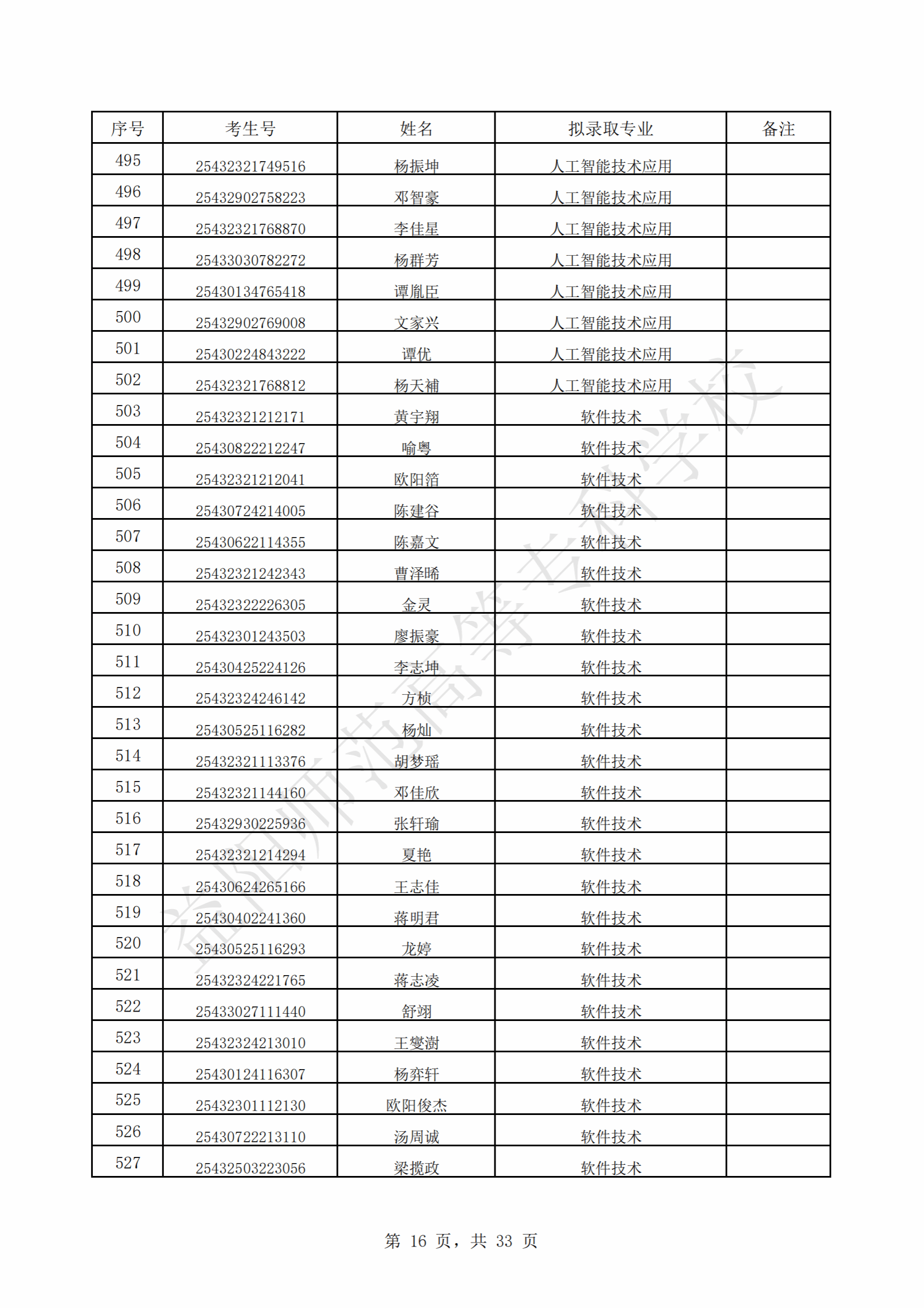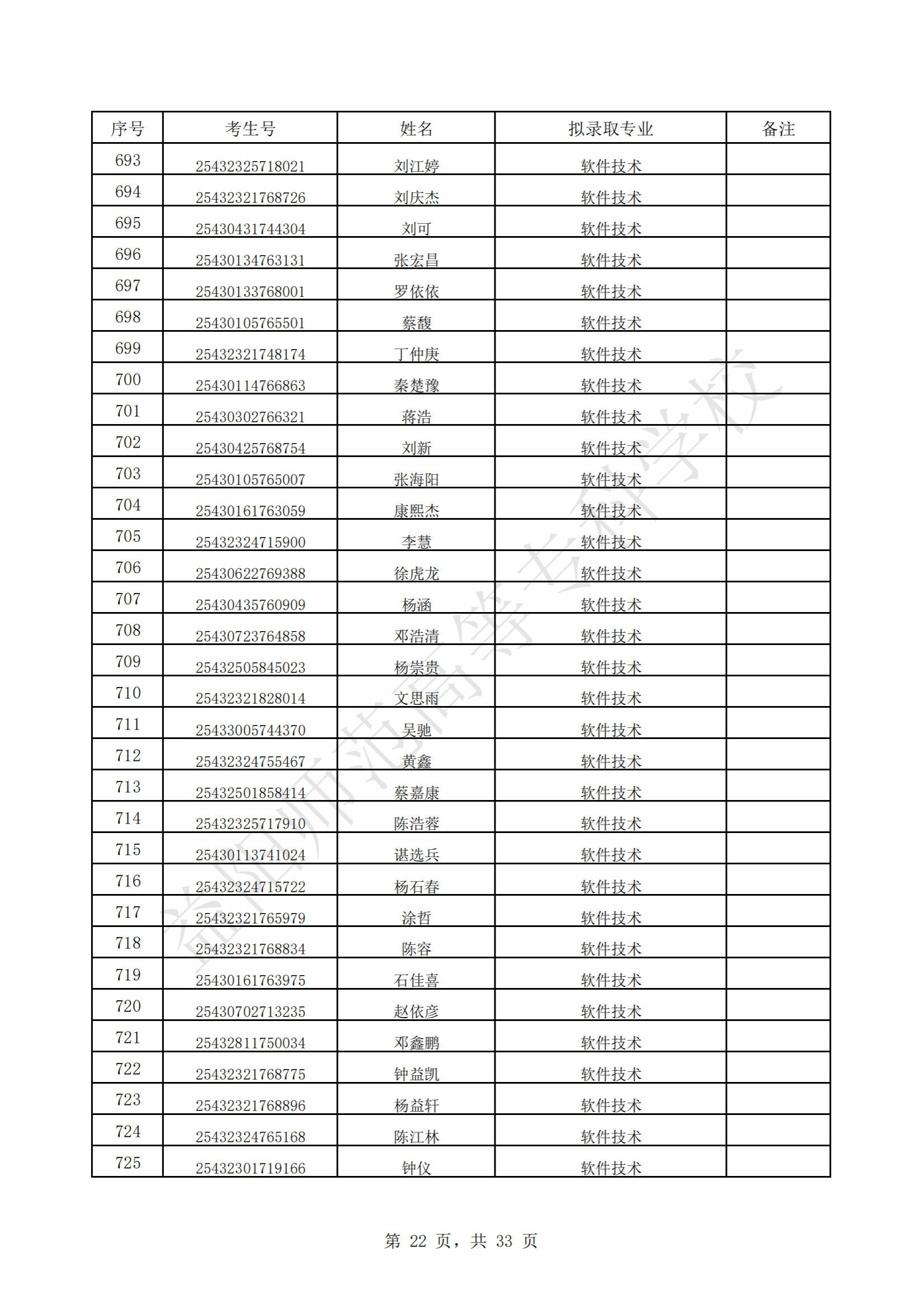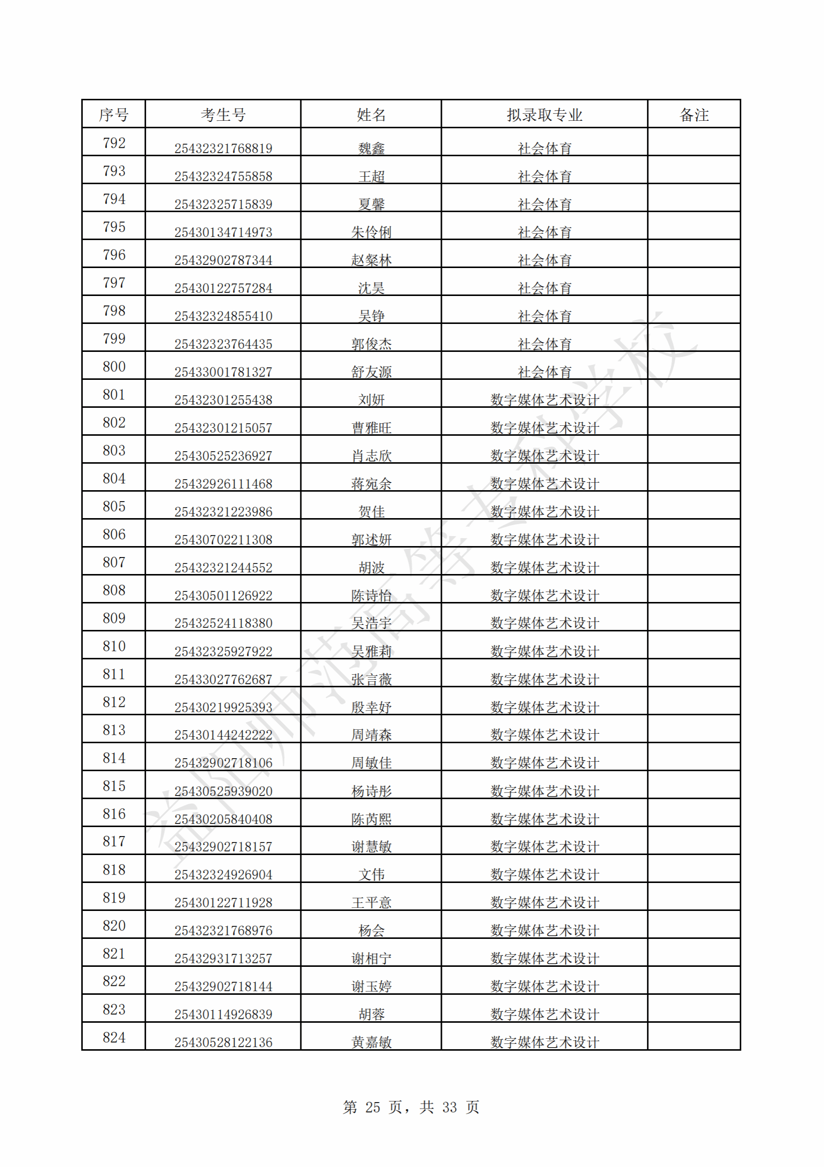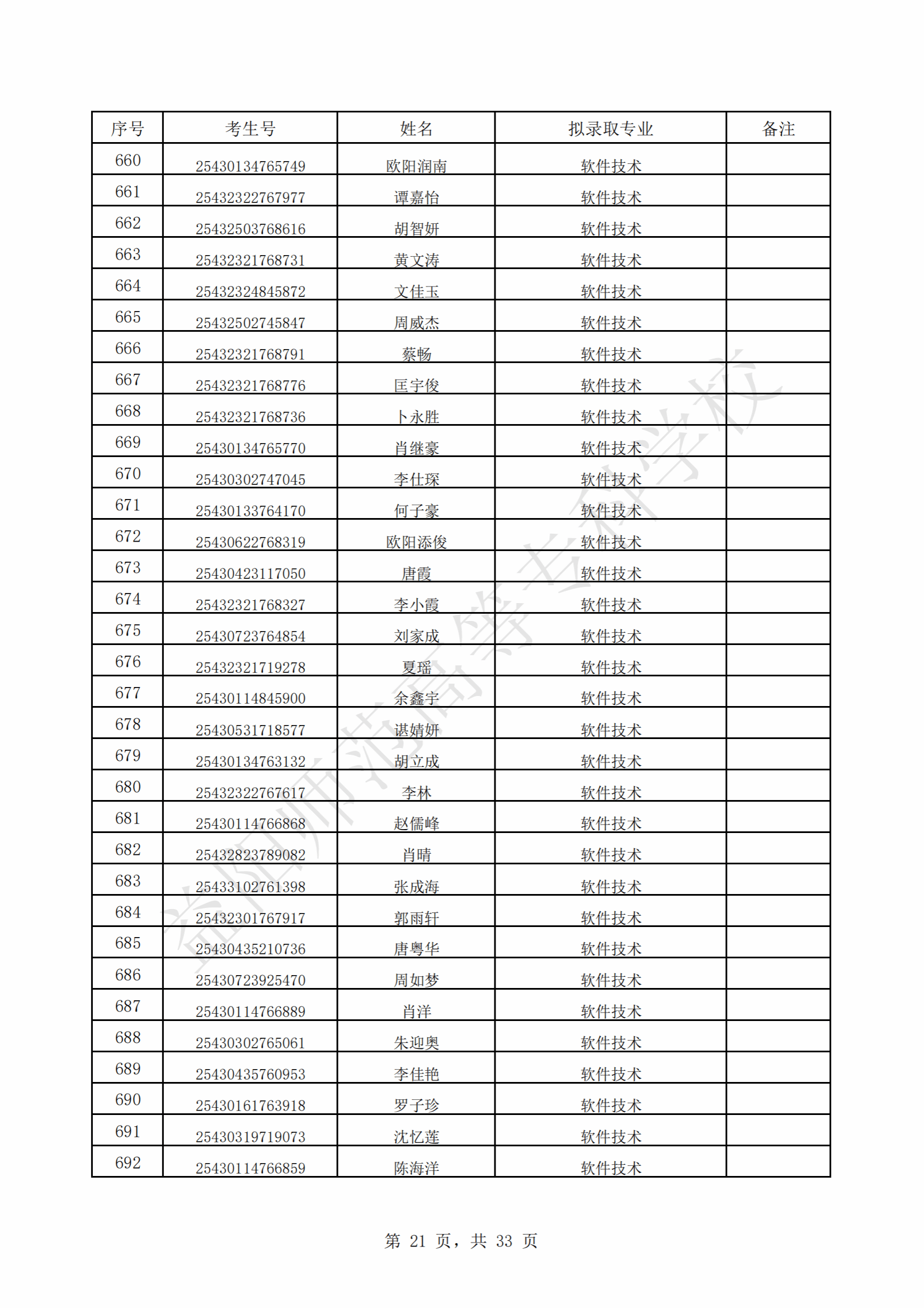 益阳师范高等专科学校2025年单独招生考试第一志愿考生拟录取名单公示