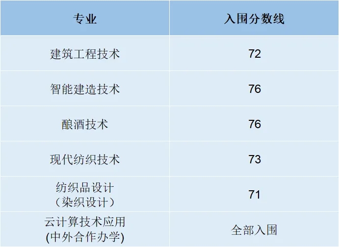 根据浙江工业职业技术学院2025年高职提前招生章程规定,学校对报名考生进行了入围综合素质测评资格的审核,现公布各专业入围分数线,具体见下表。