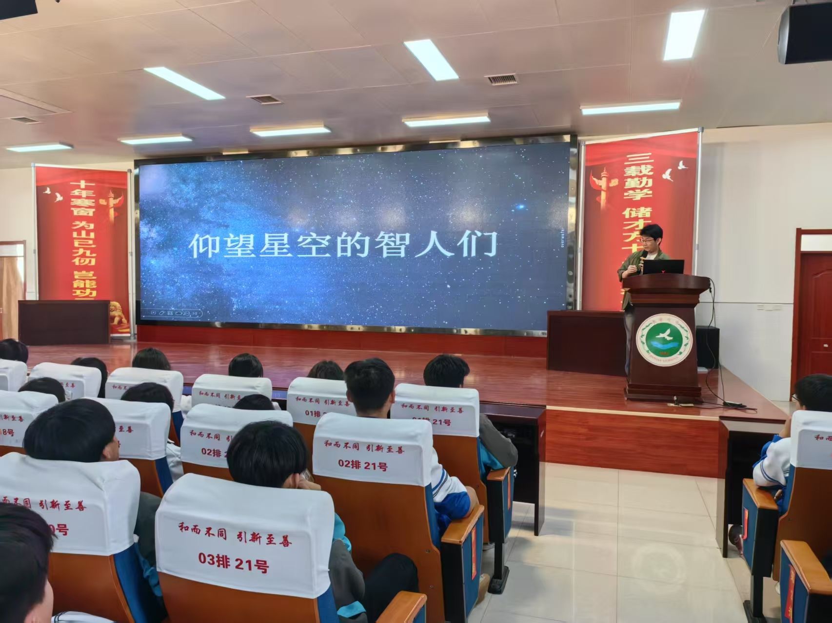 仪式结束后,飞行器学院梁毅辰副教授为六中高一的学生献上一场精彩《仰望星空的智人们》的报告,得到了同学们积极的讨论和热烈的掌声。