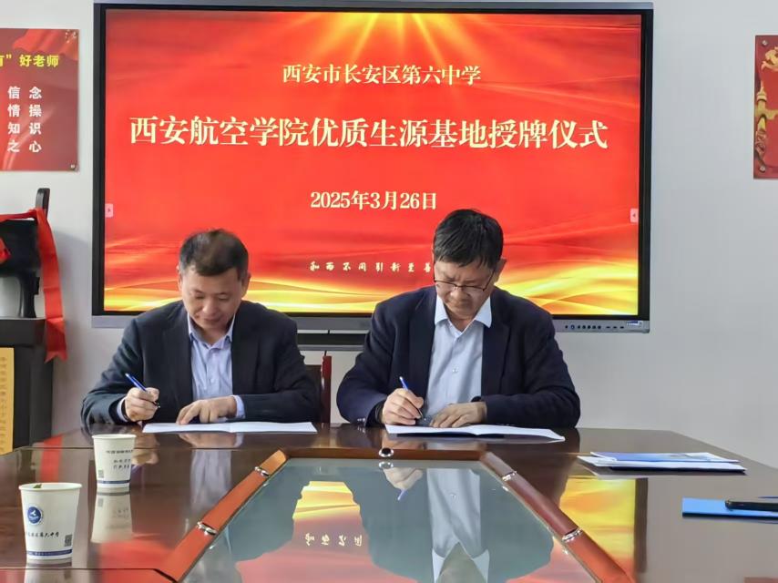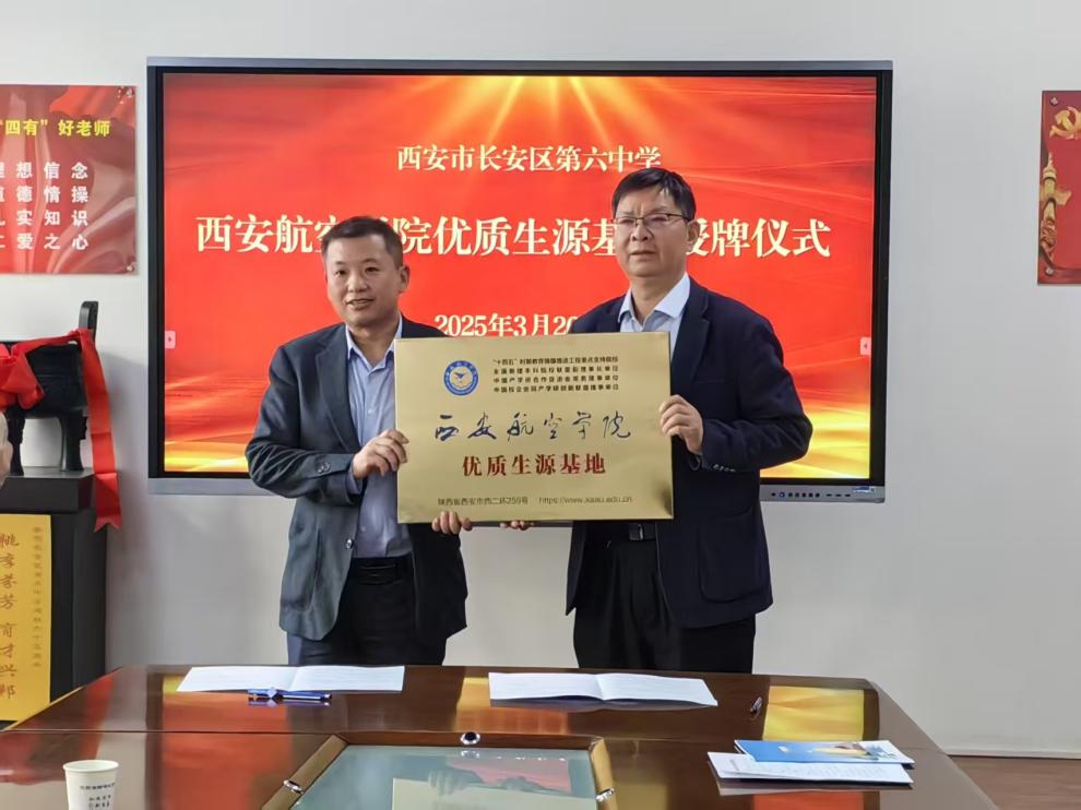 随后,我校与长安六中签订了《西安航空学院优质生源基地共建协议书》合作协议,同时授予优秀生源基地牌匾。