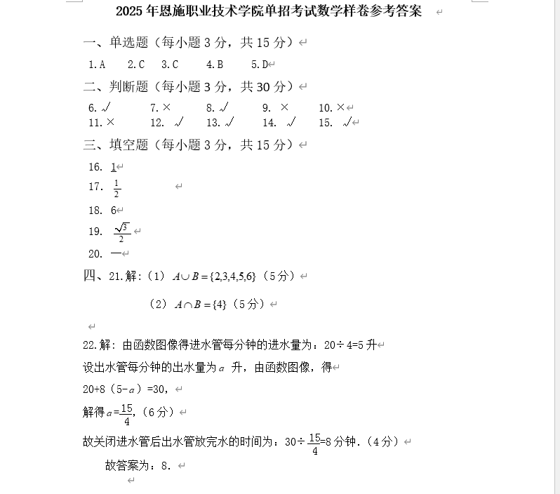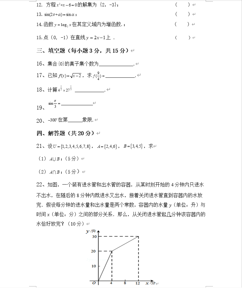 试题以选择题、判断题、填空和解答等题型呈现。