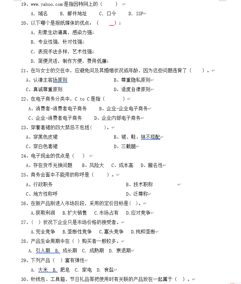 考试内容:电子商务、市场营销、网络营销、商务礼仪、推销技巧。