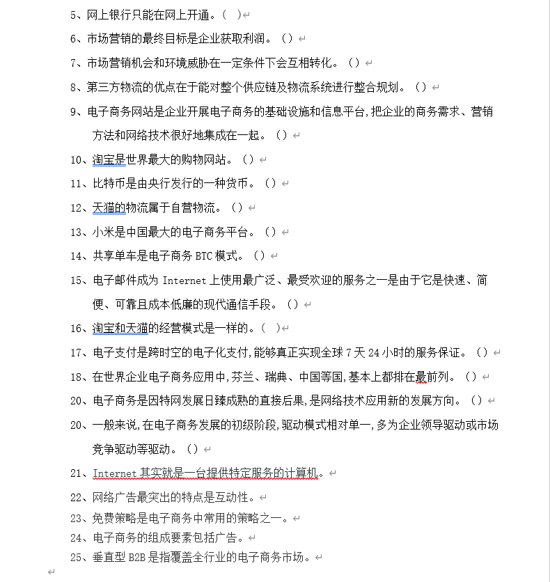 (2)判断题:本大题共25小题,请在你认为正确的小题后面的括号里打“√”,错误的打“×”(或题目前面指定的答题区域内),每小题2分,共50分。