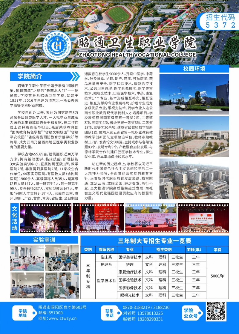 昭通卫生职业学院2023年高职单招招生简章