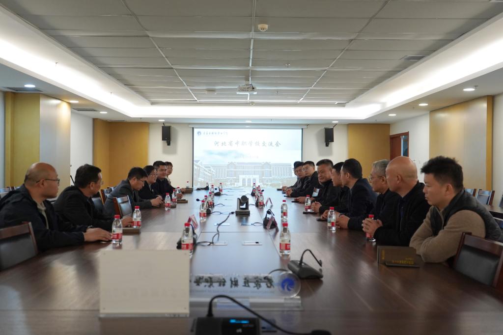 2025年3月19日下午,新乐市职业技术教育中心、平乡县职业技术教育中心、藁城区职业技术教育中心、栾城区职业技术教育中心、新河县职业技术教育中心及文博教育集团领导一行20人莅临我校参观交流。此次访问以深化中高职贯通合作为核心,通过实地考察、专题研讨等形式,双方共探职业教育高质量发展新路径。