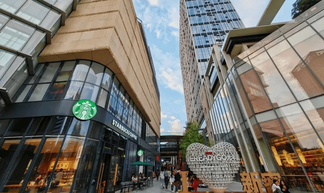 A:学校商业街位于公寓楼下,超市、饭店、便利店、水果店、理发店等商业配置齐全,瑞幸、幸运咖、蜜雪冰城、益禾堂、塔斯汀等多家知名连锁品牌进驻校园,足不出校,尽可享受城市商圈繁华。