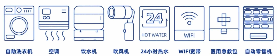 A:同学们可通过迎新系统在缴费后进行选宿。新生入住6人间或4人间宿舍,空调宽带全覆盖,淋浴间,24小时热水,24小时不断电不断网,单独饮水机,每栋宿舍楼配备全自动洗衣机、单独阅览室、自动售卖机、打印机、吹风机等,一楼大厅还有公共休息区,方便学子日常生活与放松休闲。