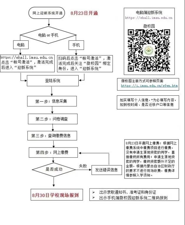 详细新生须知请访问迎新网学习。网址:https://yingxin.imau.edu.cn