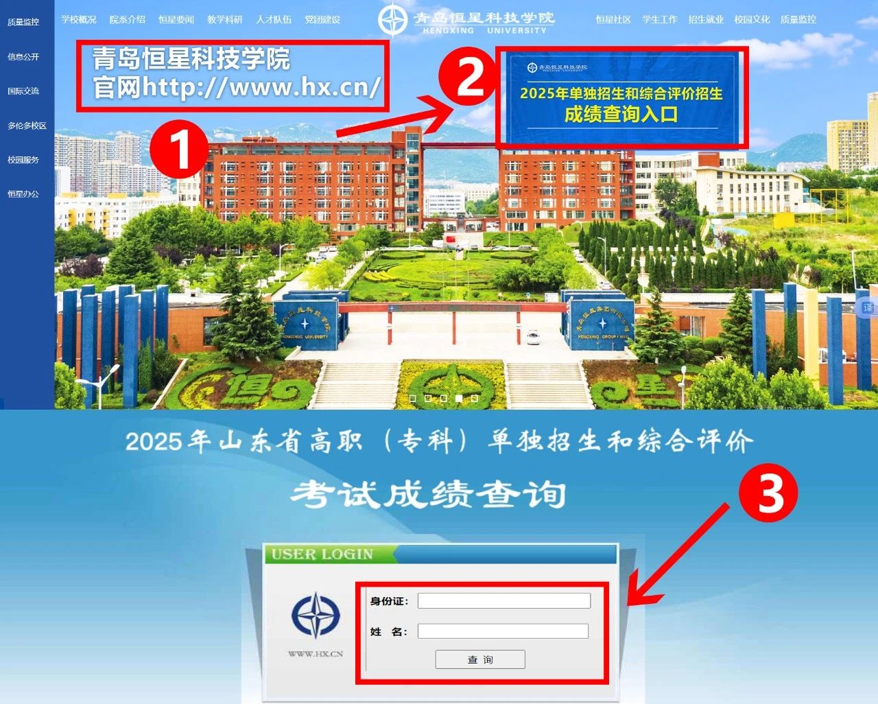 登录青岛恒星科技学院官网(http://www.hx.cn/)--点击飘窗--输入“姓名”和“身份证号”--查询