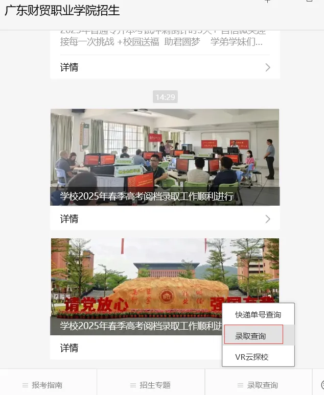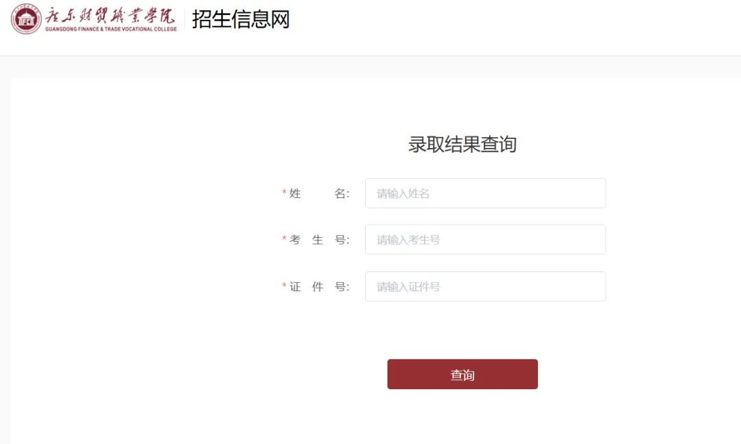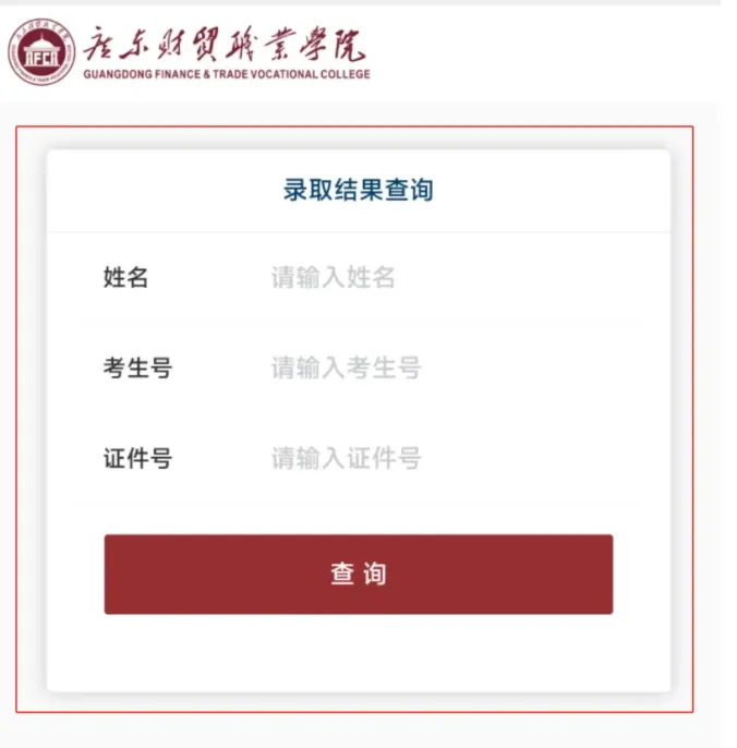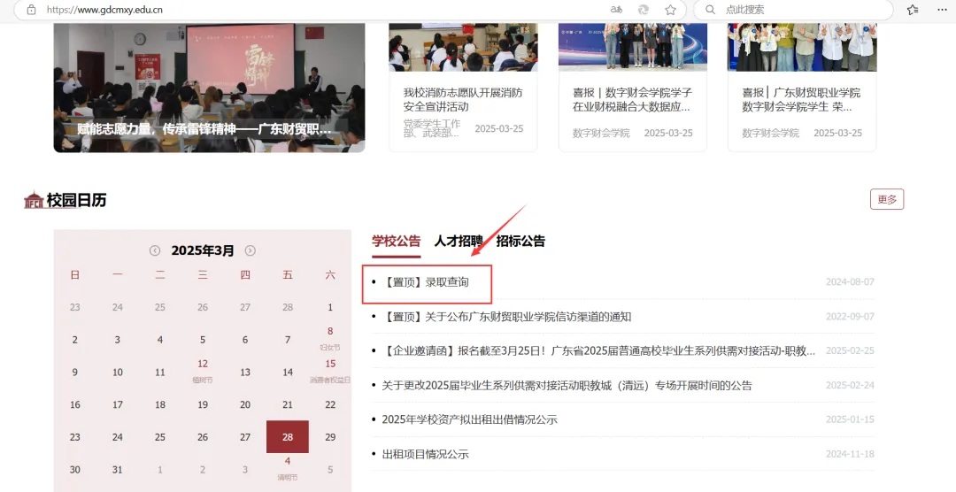 步骤一:登陆广东财贸职业学院官网https://www.gdcmxy.edu.cn/,找到:录取查询。