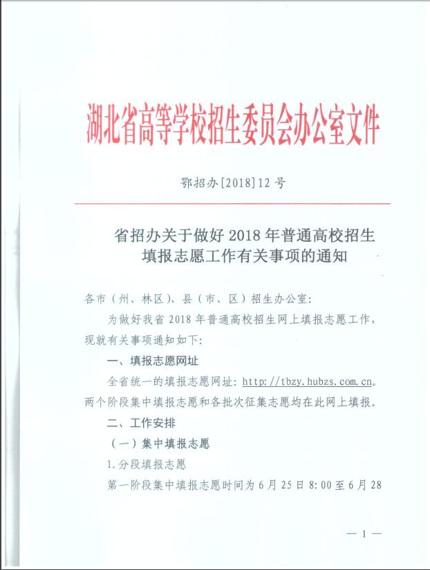 2018年湖北填报志愿的通知