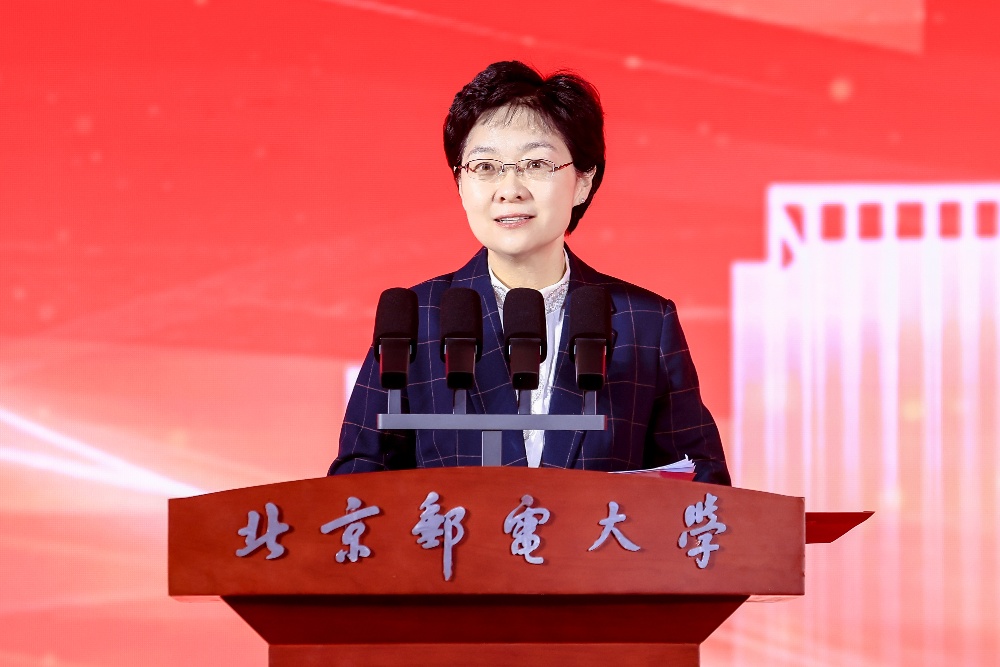 续梅代表学校党委向受到表彰的先进集体和优秀个人表示祝贺。续梅指出,一年来,全校师生聚焦“强国建设 北邮何为”这一新时代北邮之问,准确识变、科学应变、主动求变,在高质量建成信息科技特色世界一流大学的道路上阔步前行,思政工作更深入人心、富有成效,人才培养机制更优化完善、彰显特色,全校师生更有志气底气、更显担当作为,在强国建设中贡献了北邮方案,在拼搏奋斗中书写了北邮精彩。续梅向同学们提出三点期望。一是矢志创新,攻坚克难,做“硬核科技”的锻造者,在科技创新的赛道上,跑出加速度,铸就硬实力。二是拥抱AI,提升能力,做“交叉融合”的实践者,以跨界创新打破学科藩篱,用融合思维攻克复杂难题。三是把握趋势,推动产学研结合,做“产业变革”的引领者,将人生追求同国家发展进步紧密结合起来,成为推动国家新兴产业和未来产业的先锋力量。续梅勉励同学们,要以建校70周年为契机,展智慧之翼,扬鸿雁之姿,奋力书写为中国式现代化挺膺担当的北邮篇章。