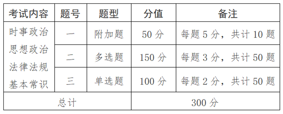 包括时事政治、思想政治和法律法规、基本常识等内容。