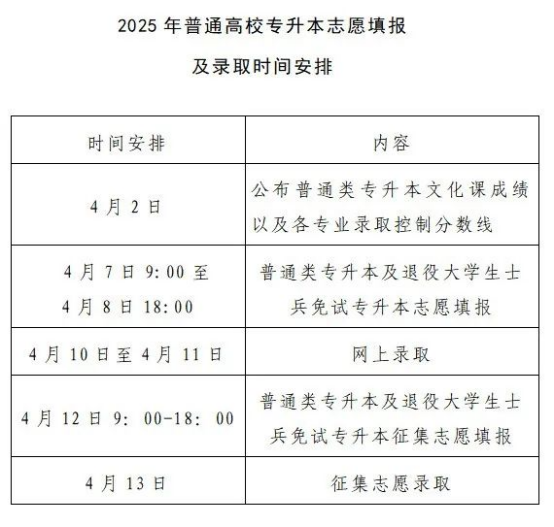 2025年普通高校专升本及对口招生考试成绩公布、志愿填报和录取工作安排