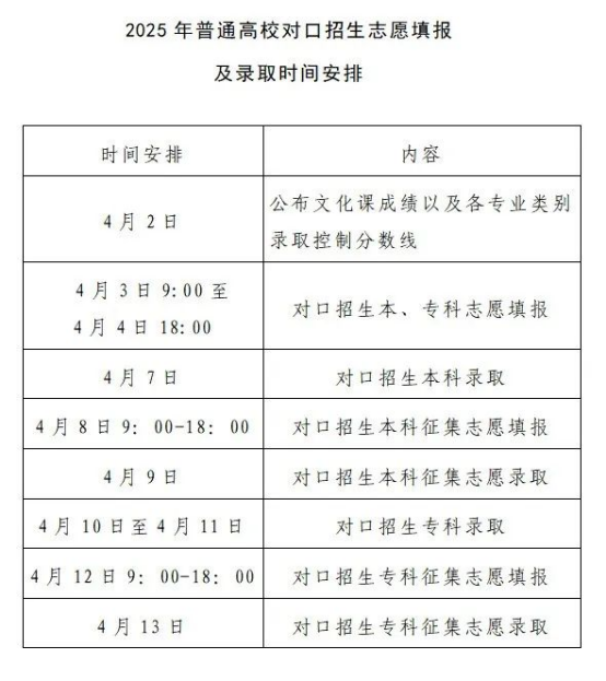 1.2025年普通高校对口招生志愿填报及录取时间安排
