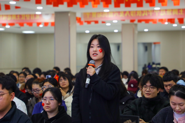 活动现场气氛热烈,同学们满怀热忱、积极主动与张楚桐展开互动交流