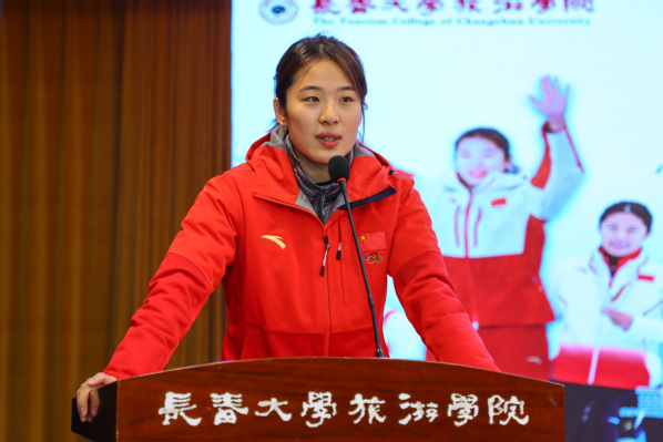 报告会上,张楚桐深情回顾了自己的体育生涯,从初涉短道速滑领域时的懵懂与热爱,到面对高强度训练和伤病挫折时的坚持与挣扎,再到在国际赛场上斩获荣誉的高光时刻,她用汗水和坚持在冰面上滑出了属于自己的荣耀轨迹。张楚桐的倾情分享让同学们深切感受到体育精神的力量,为同学们在学业和人生道路上克服困难、追求卓越提供了宝贵的经验和启示。