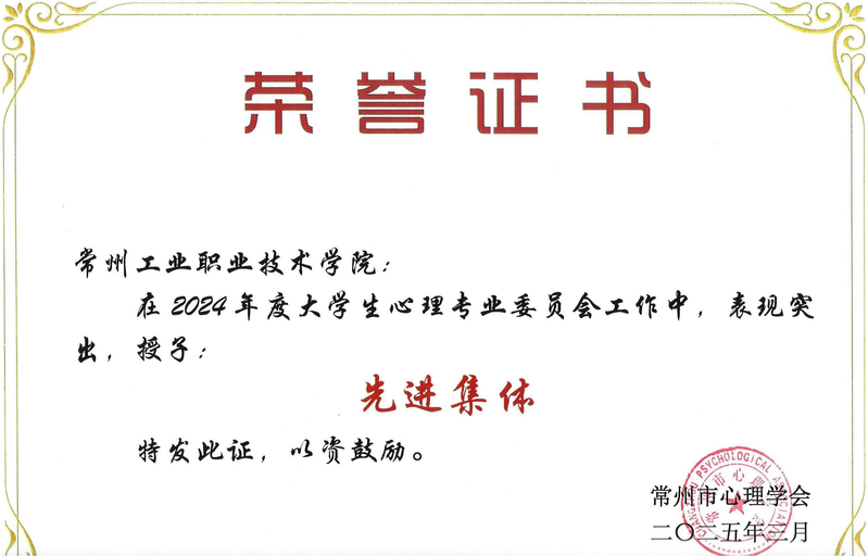 近日,常州市心理学会公布2024年度心理健康教育工作评比结果,我校再度获评“心理健康教育工作先进集体”荣誉称号。这是我校自2019年以来连续第六年获此殊荣,充分彰显了学校在心理健康教育领域的持续深耕与卓越成效。