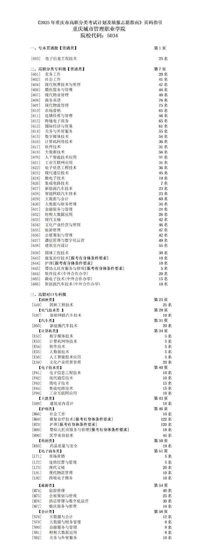 《2025年重庆市高职分类考试计划及填报志愿指南》页码指引
