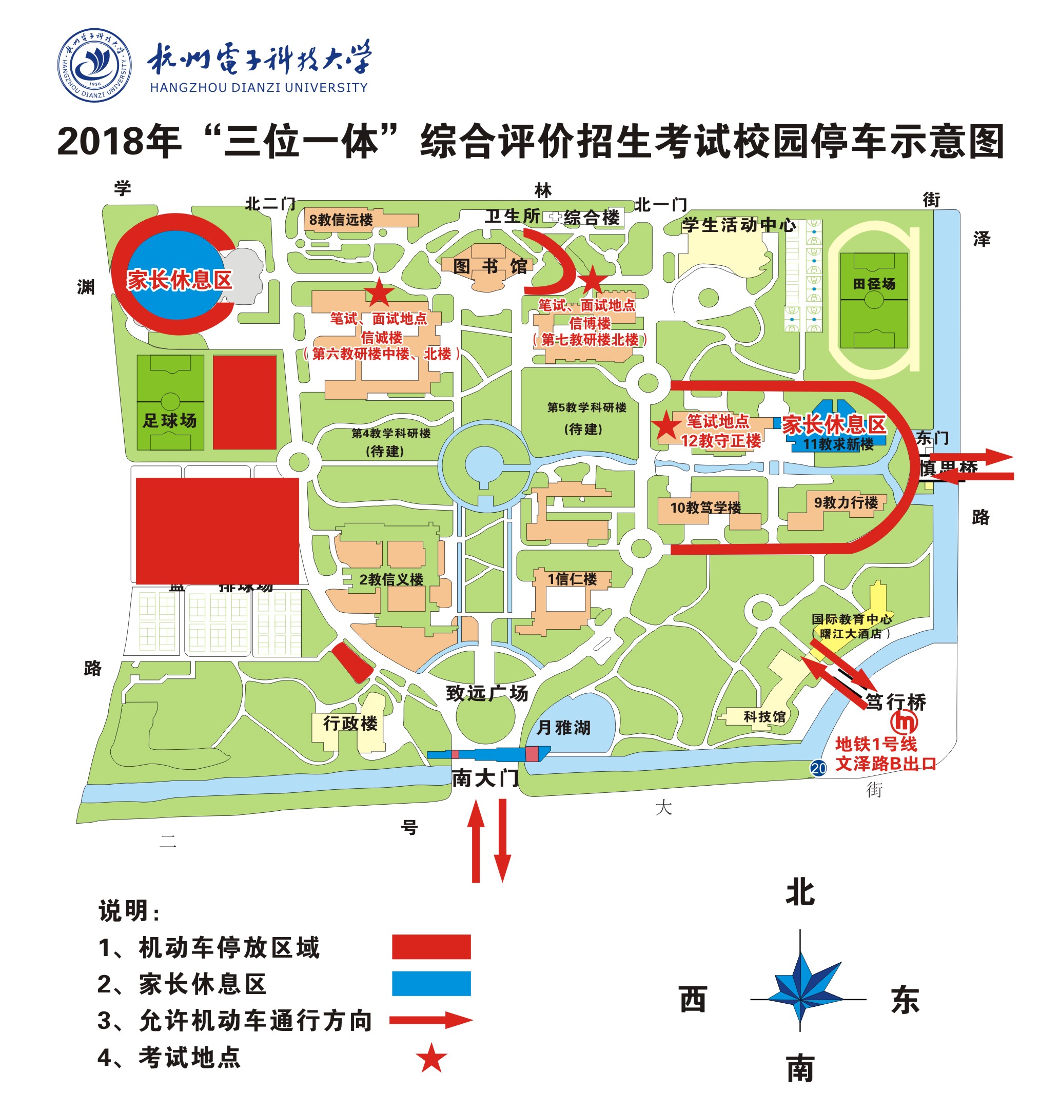 图2:杭州电子科技大学2018年“三位一体”综合评价招生考试校园停车示意图(建议下载保存在手机上)