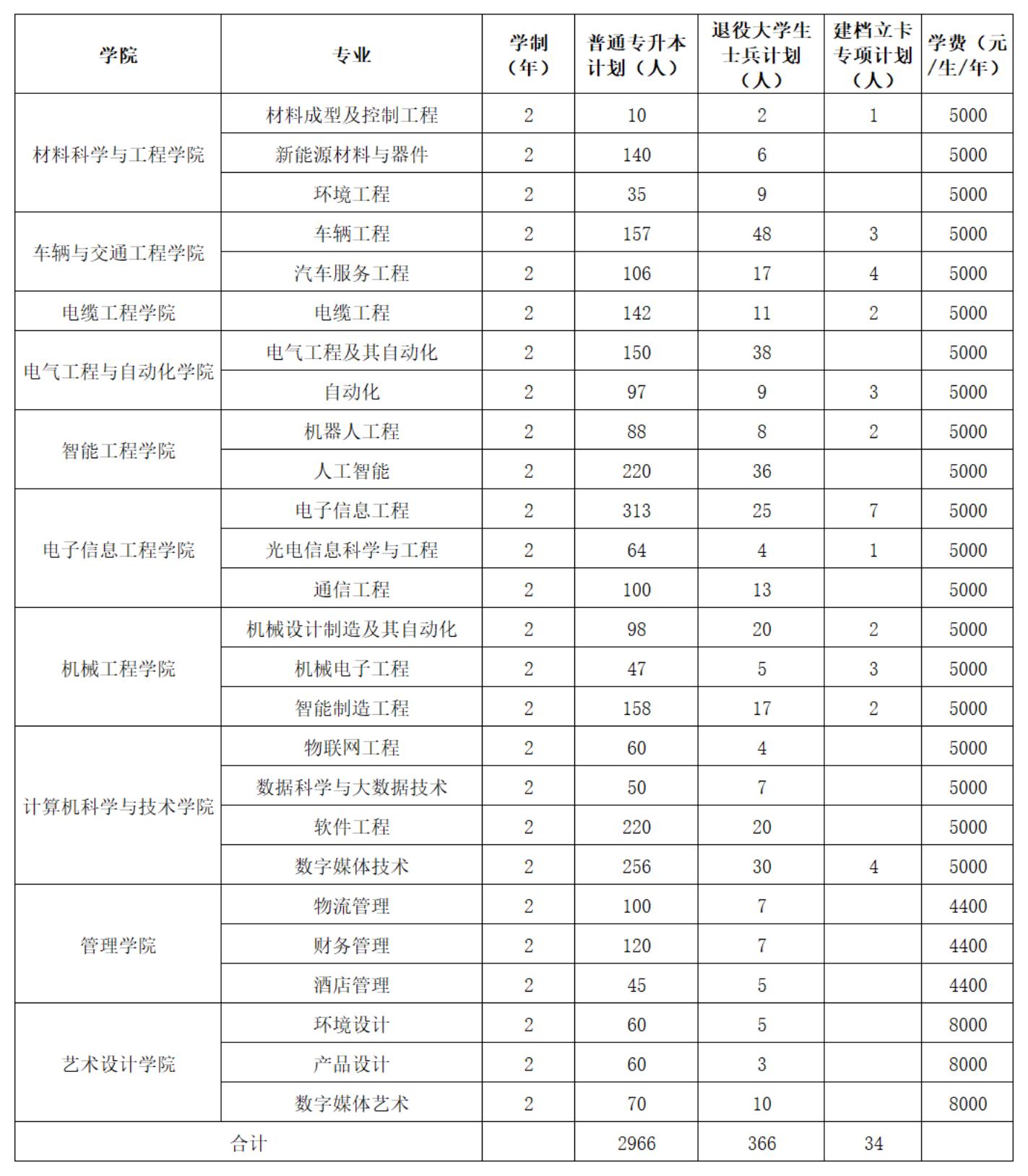 2024年河南工学院专升本招生计划