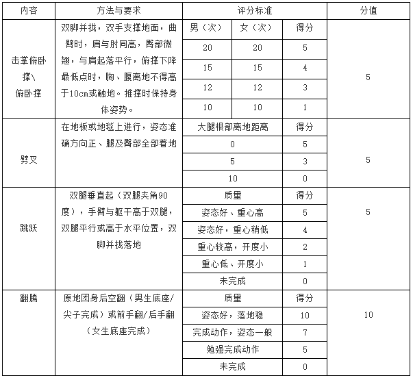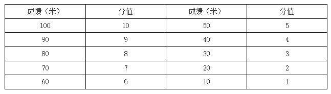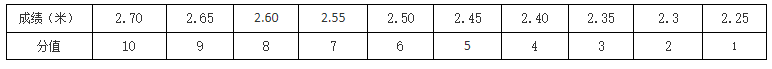 四、抢点射门 10分;五、30米跑 10分;六、立定跳远 10分;