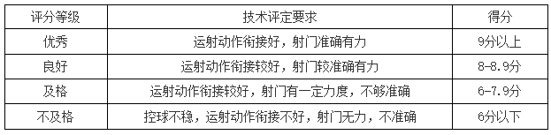 守门员可在行进间颠球、运球射门、抢点射门三项中免试任意两项,加试扑球技术。