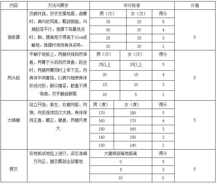 七、比赛 40分;八、守门员加试 20分;(可免测一、三、四项中任意两项)