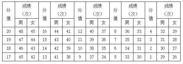 (1)考试方法:考生在20秒规定时间内,用鞭腿技术快速踢打沙包(左、右交替进行,两脚不可同时离地),要求踢腿高度在距离地面100厘米以上。每人测试1次。考评员对考生在规定时间内踢打的次数进行计数,凡出现动作不规范、踢打无力,高度不符合要求时,不计次数。