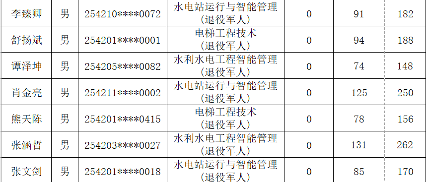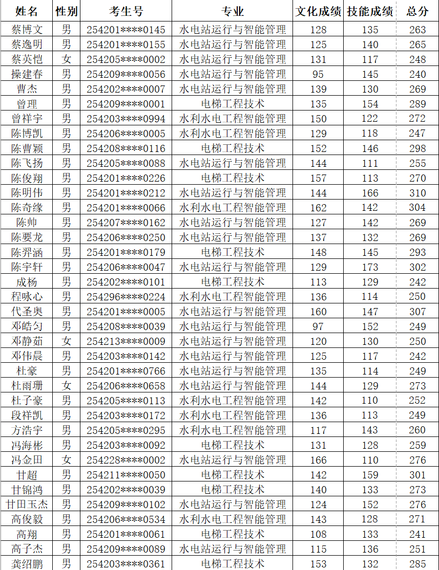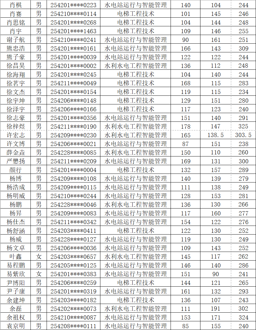 根据《省教育厅关于做好2025年高职单独考试招生工作的通知》(鄂教职成函〔2025〕3号)文件精神。按照《湖北水利水电职业技术学院2025年高职单独招生章程》中公布的录取标准和录取办法,确定各专业拟录名单并予以公示(按照考生姓名排序)。公示期为4月7日-13日,公示期内如有疑问,及时与我校招毕办联系。经我校公示录取的考生,不得参加今年后续普通高校招生统一高考、技能高考以及其他考试和录取。最终录取结果以省招办审核通过的名单为准。咨询电话:027-87378093监督电话:027-87378279。