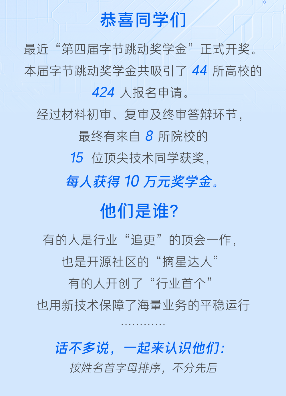 第四届字节跳动奖学金获奖名单公布!恭喜这 15 位同学